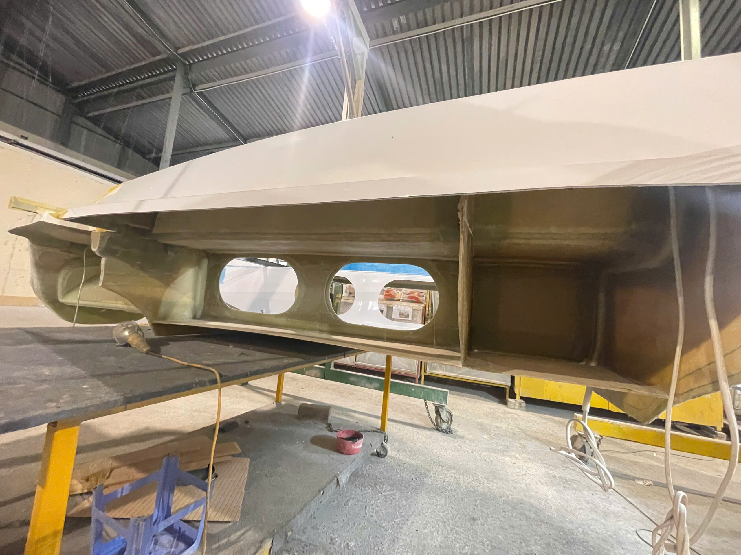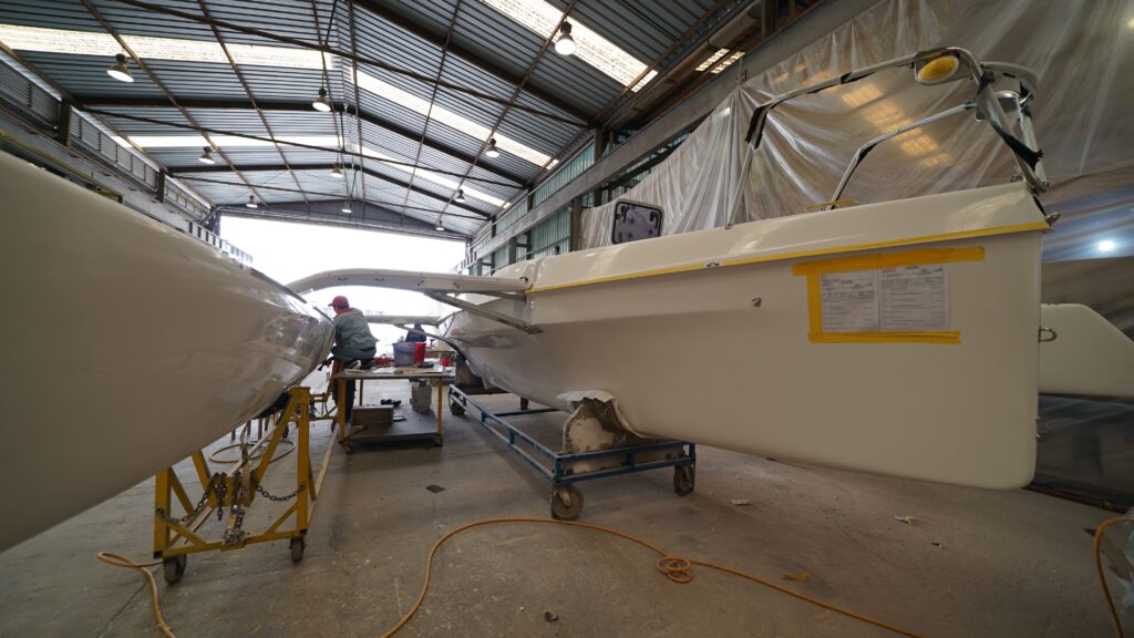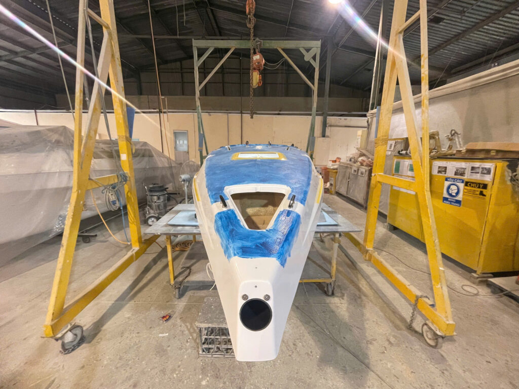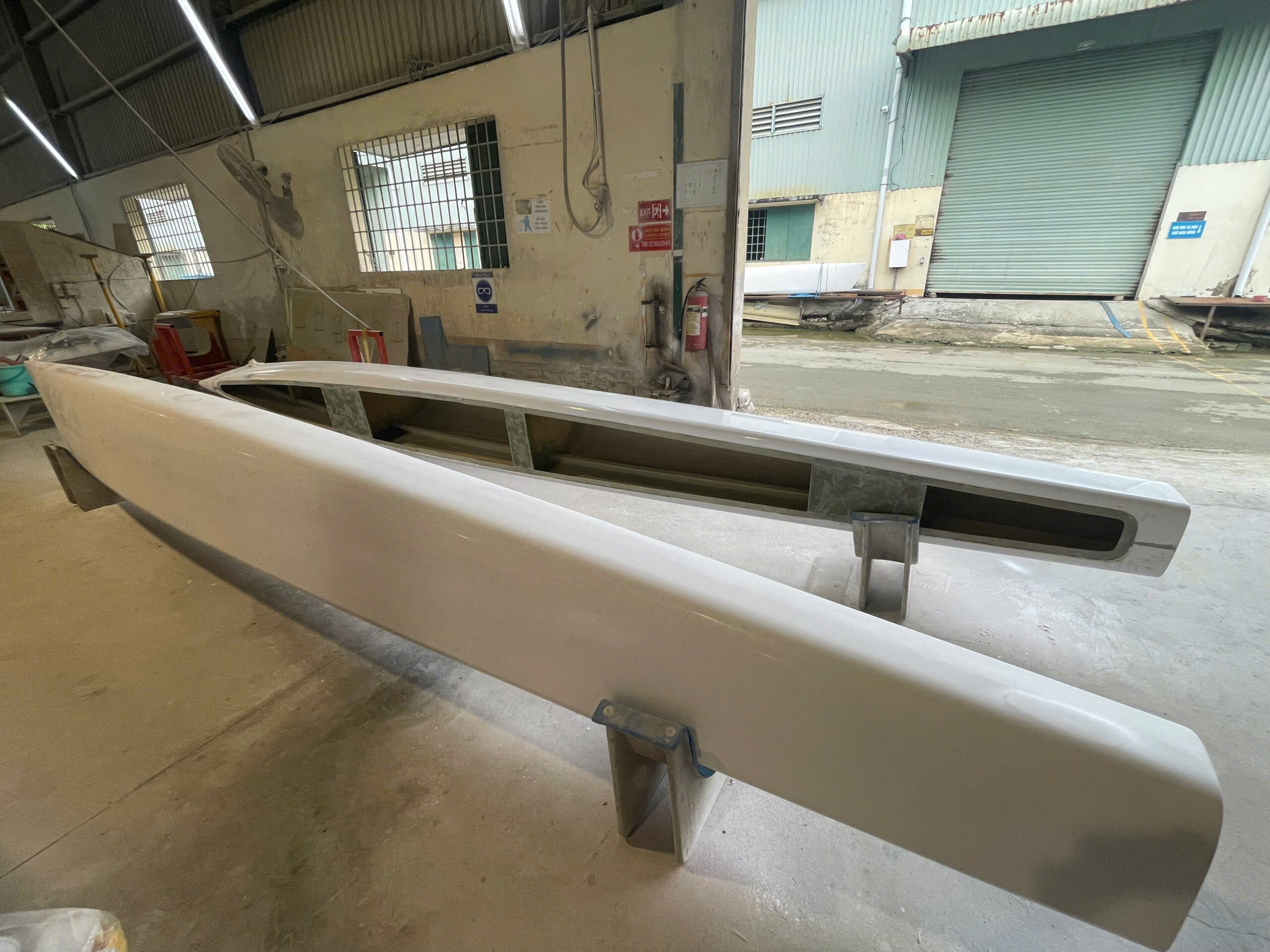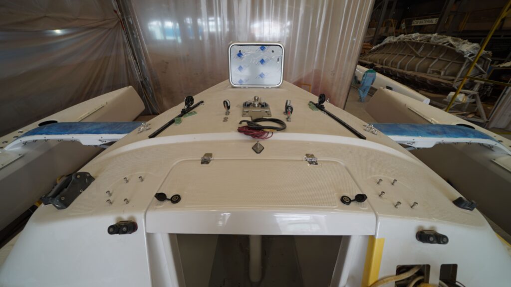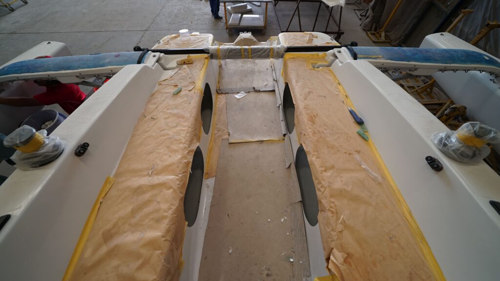 The Assembly Team is currently conducting dry-fitting and precision trimming to ensure perfect alignment, preparing for the upcoming hull-to-deck bonding. At the same time, the beams and floats are being assembled and finished with gelcoat repair, bringing the structure closer to its final form with a refined, high-quality surface.