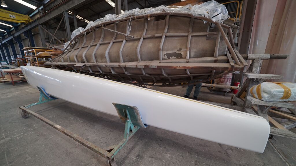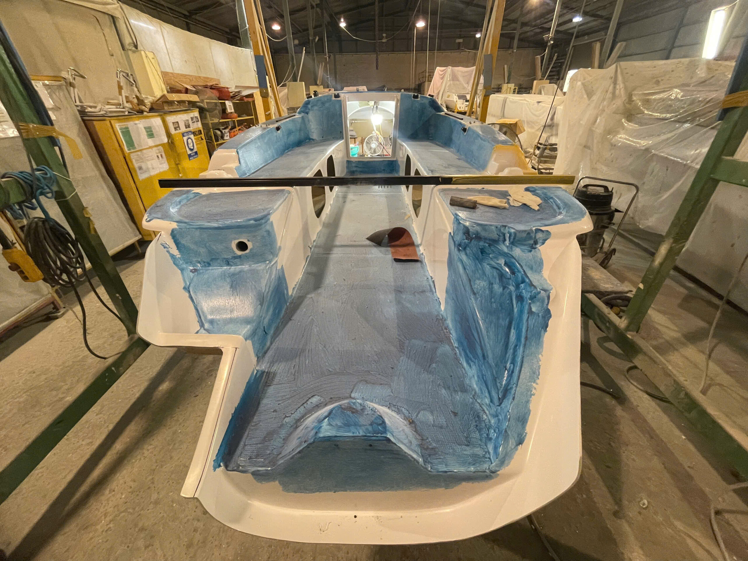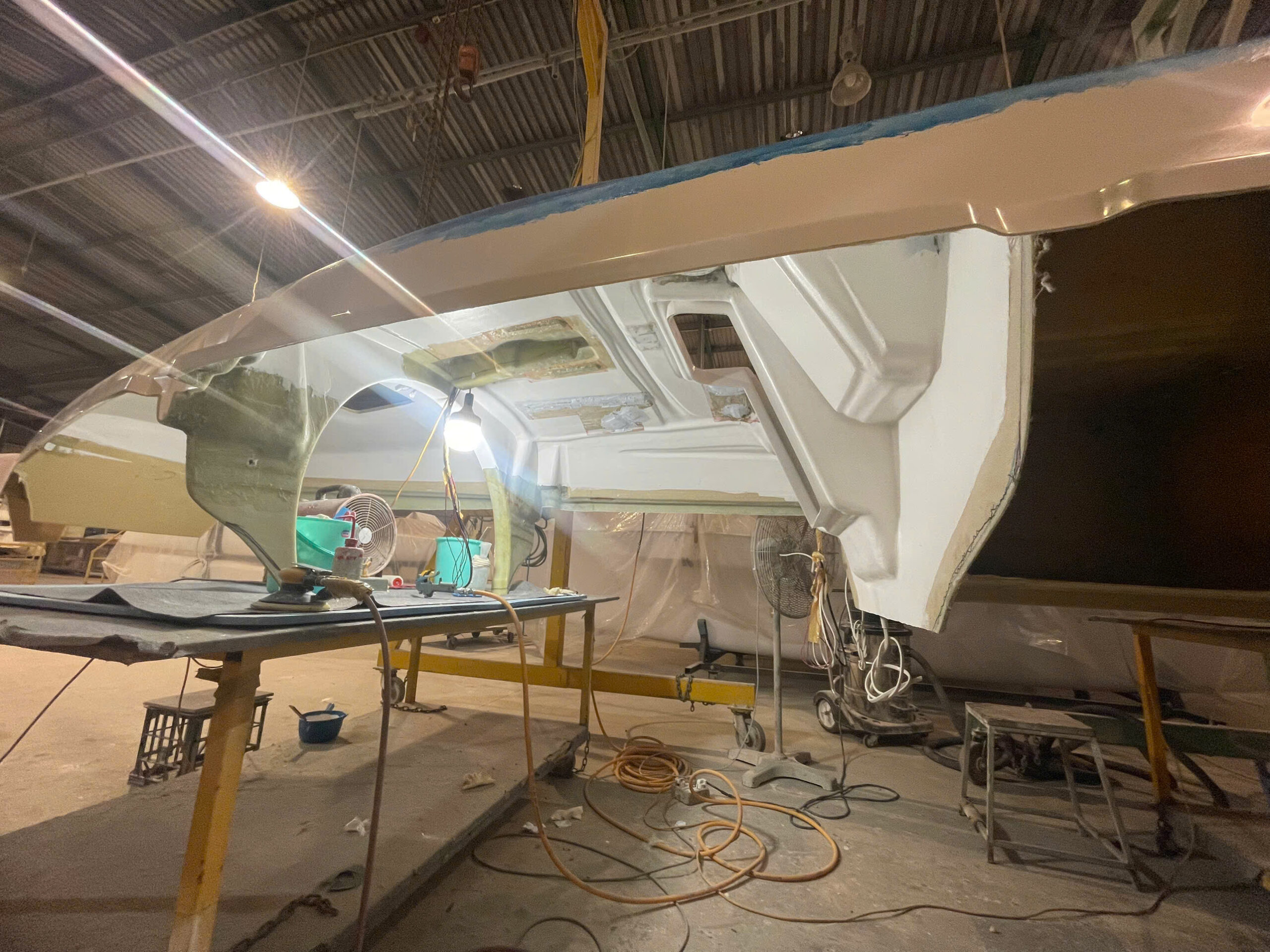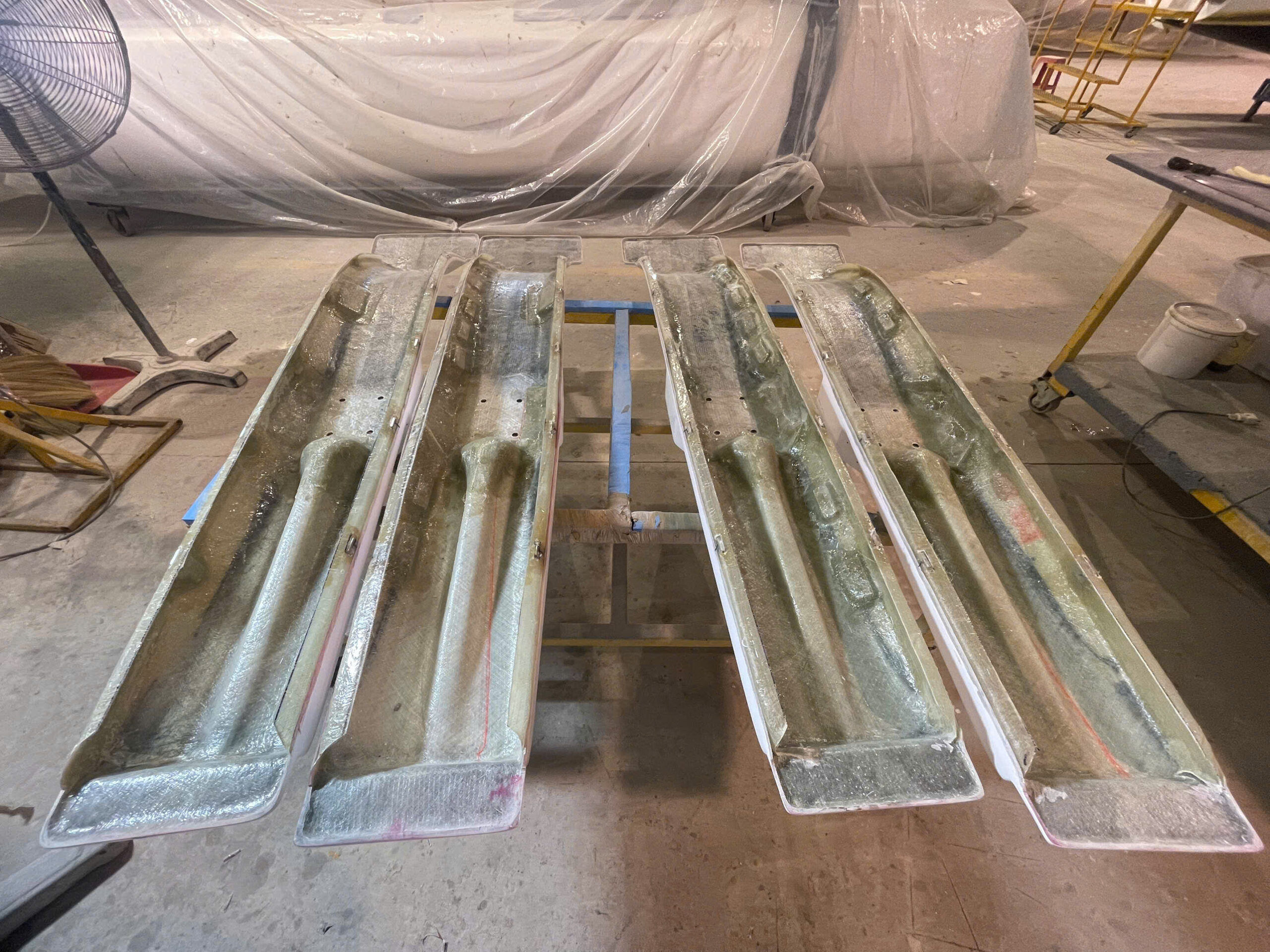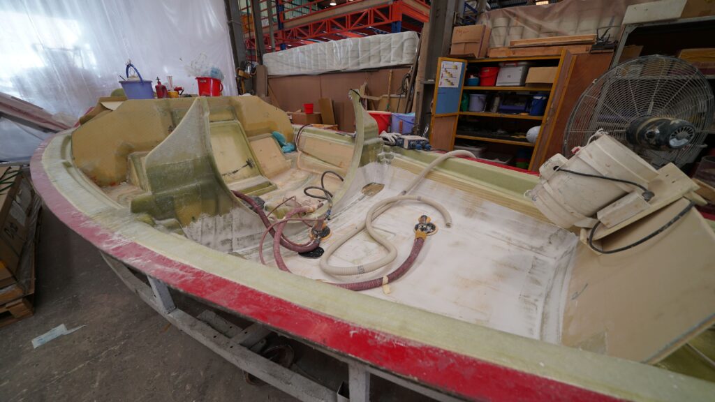 The Assembly Team is currently conducting dry-fitting and precision trimming to ensure perfect alignment, preparing for the upcoming hull-to-deck bonding. At the same time, the beams and floats are being assembled and finished with gelcoat repair, bringing the structure closer to its final form with a refined, high-quality surface.
