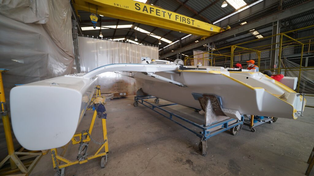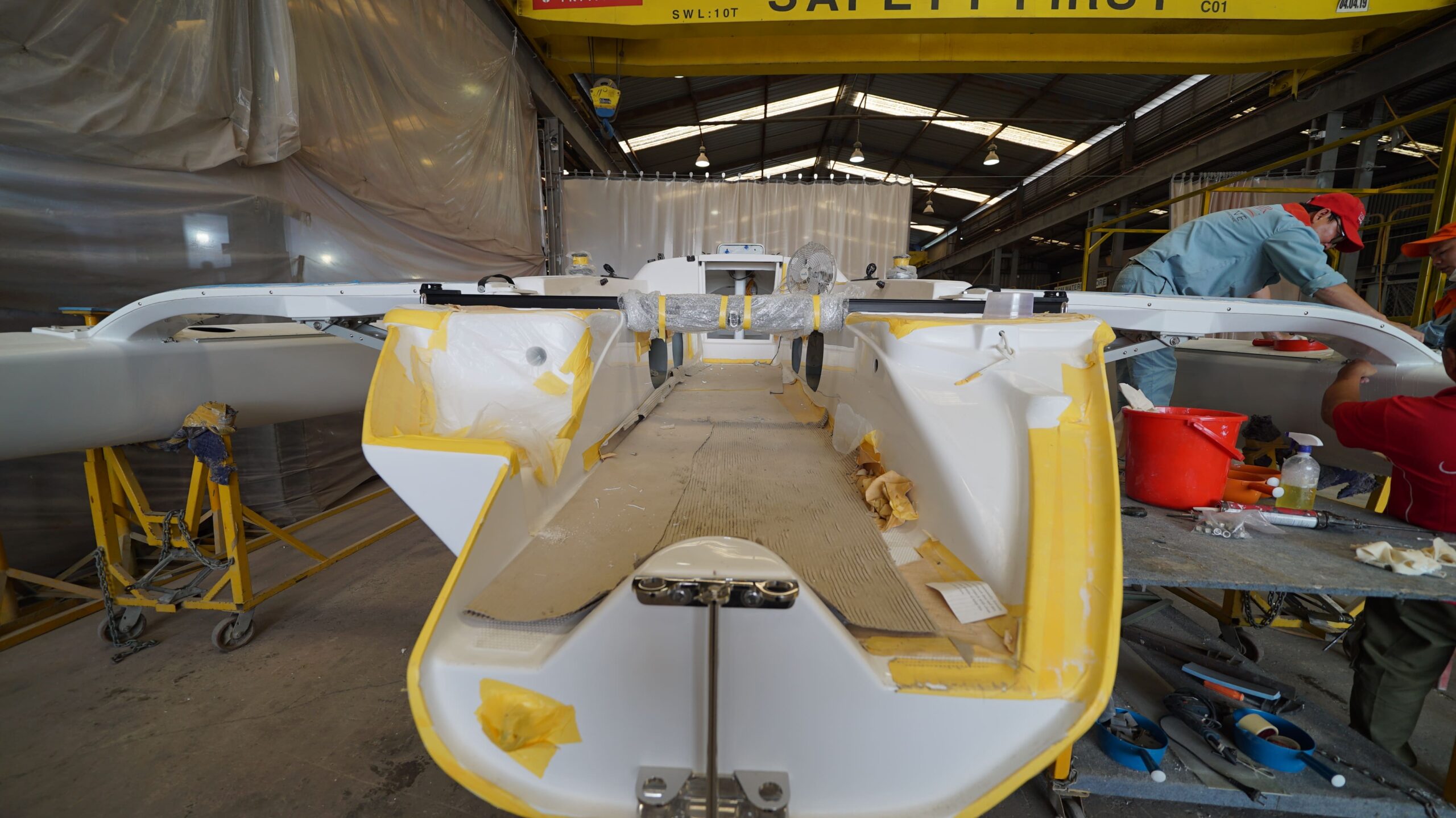 Our Lamination Team has successfully completed the hull, deck, beams, and floats, and all of the components have now been handed over to the Trimaran Team for the next phase.